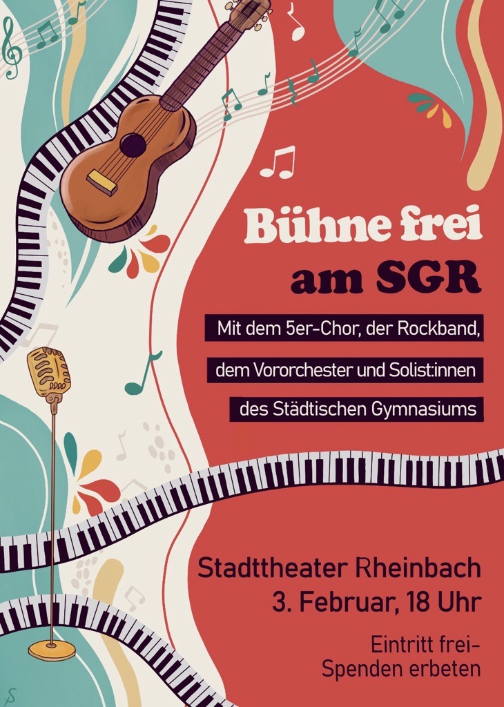 Der Eintritt ist frei, über Spenden zur Unterstützung der musikalischen Arbeit am SGR freuen wir uns sehr.