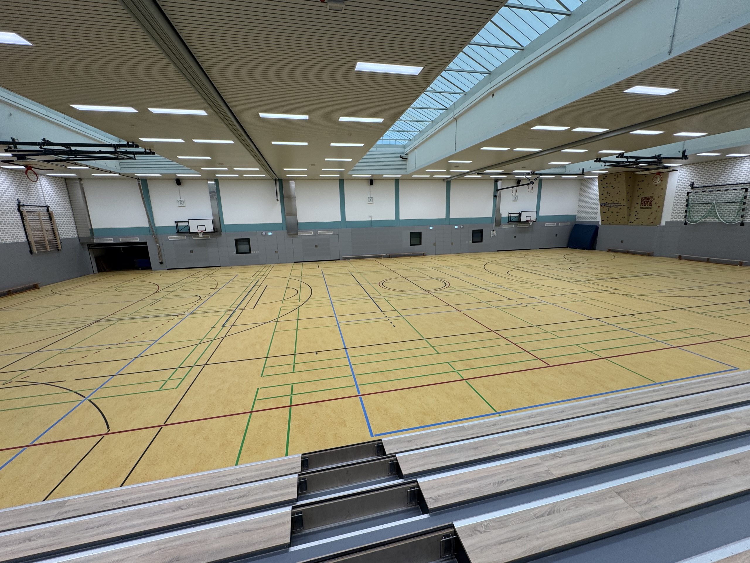 Nach rund zwei Jahren sind die Sanierungsarbeiten in der Turnhalle in der Berliner Straße endlich abgeschlossen. Damit kann der Sportunterricht am Städtischen Gymnasium Rheinbach und der Vereinssport wieder wie gewohnt in der Halle ausgeübt werden.