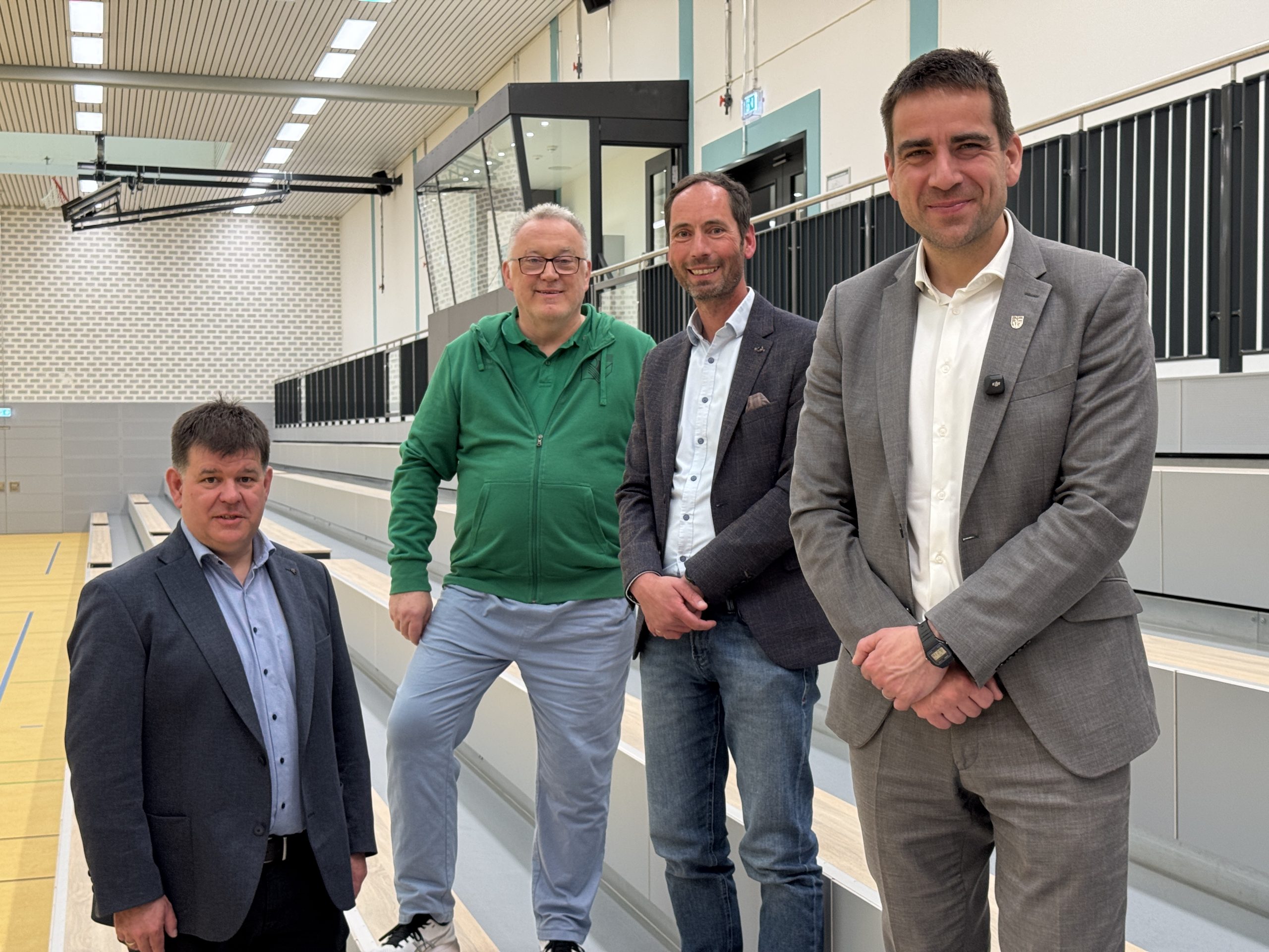 Im Rahmen der Sanierung wurde nicht nur der Hallenboden erneuert, sondern auch der Umkleidebereich und die sanitären Anlagen vollständig saniert. Außerdem wurde die technische Ausstattung auf den neuesten Stand gebracht. Die zwischenzeitlich eingelagerten Sportgeräte wurden um neue ergänzt und bieten Potenzial für eine attraktive Gestaltung des Sportunterrichts. Insgesamt hat die Stadt Rheinbach über 6,5 Millionen Euro in die Sanierung investiert. Das Ergebnis kann sich sehen lassen. Mit den Worten „Möge diese Halle vielen Menschen Raum geben, sich auszupowern, Fairness zu üben und Gemeinschaft zu erleben" eröffnete Bürgermeister Dr. Daniel Phiesel gemeinsam mit Schulleiter Stefan Schwarzer und dem geschäftsführenden Vorstand des Turn-Vereins Rheinbach, Thomas Schloßbauer, vergangenen Montag die Sporthalle.