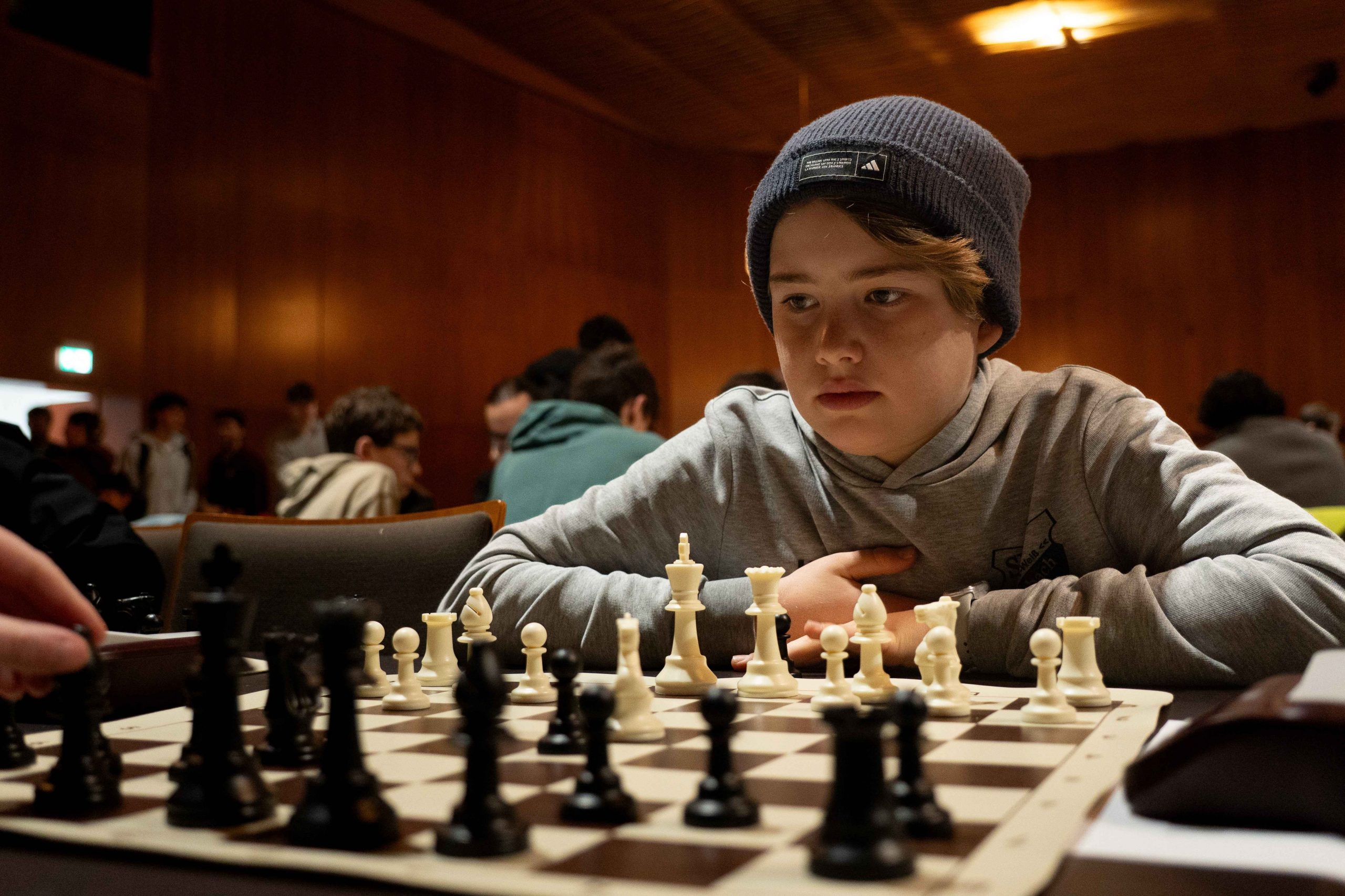 Konzentrierte Gesichter, gespannte Stille im Raum, das leise Klicken der Schachuhren