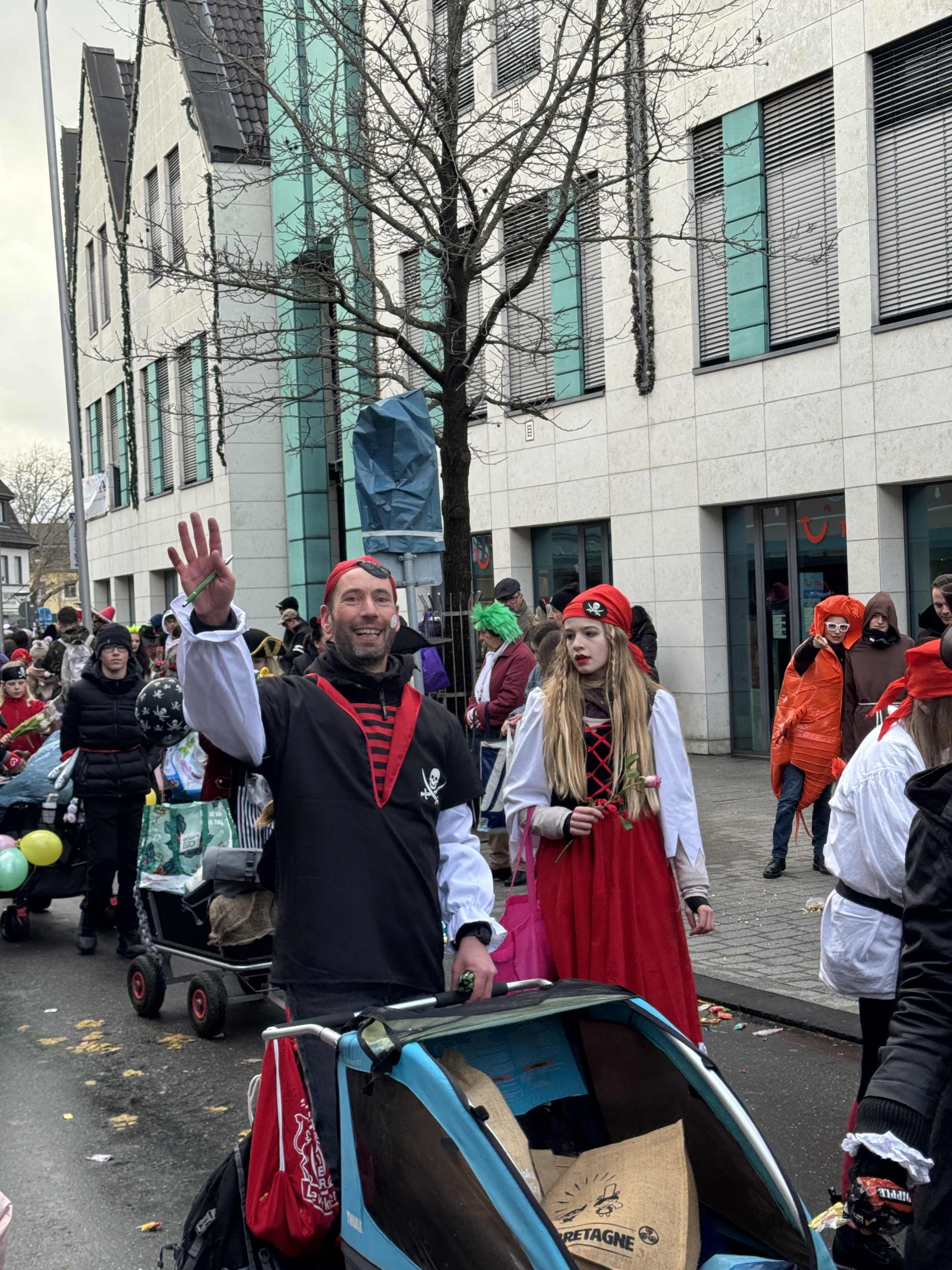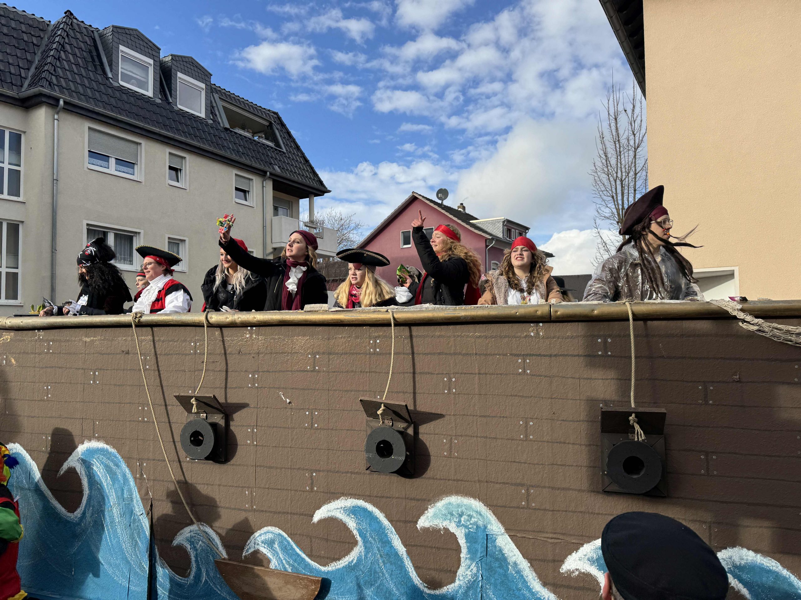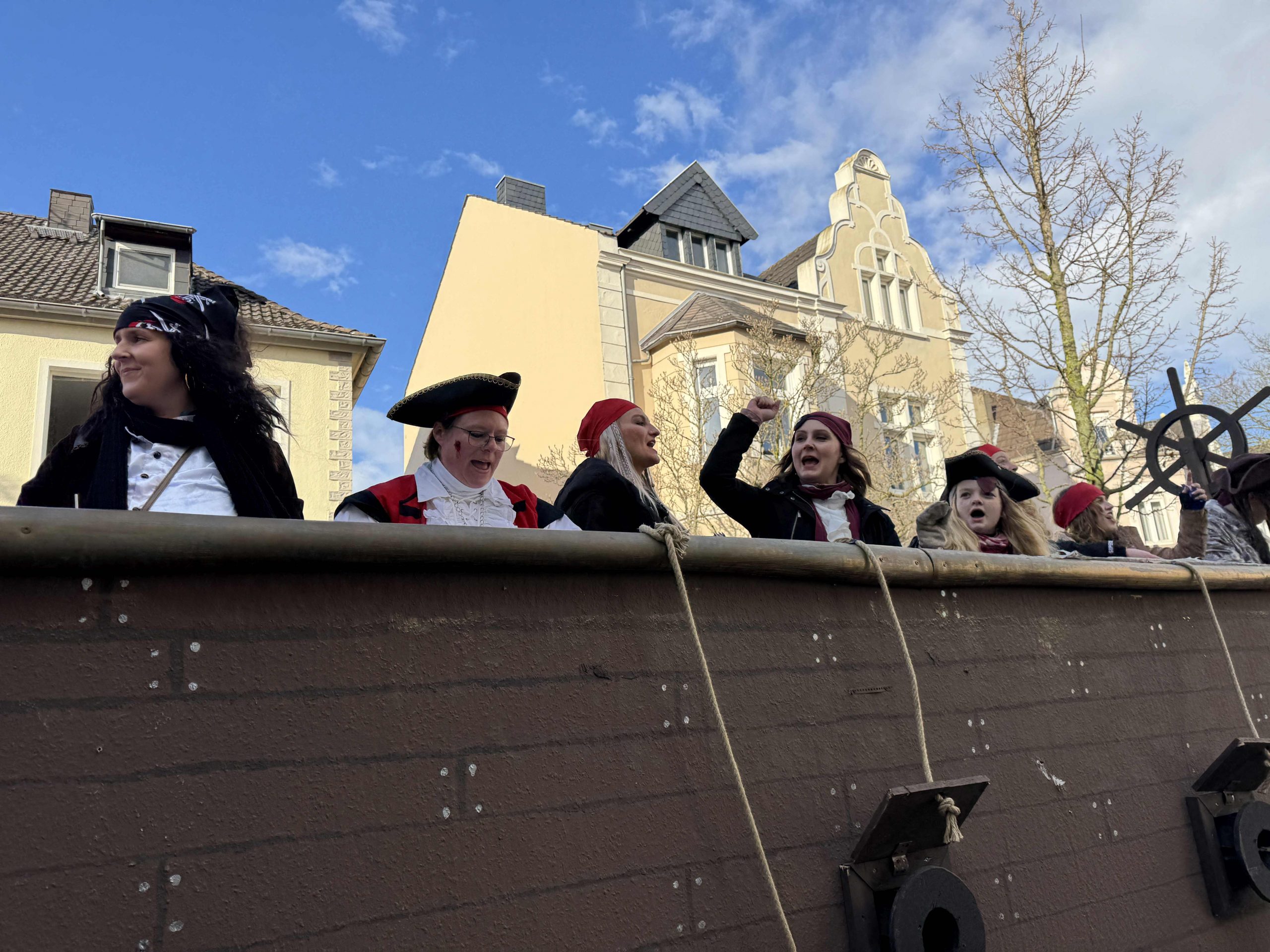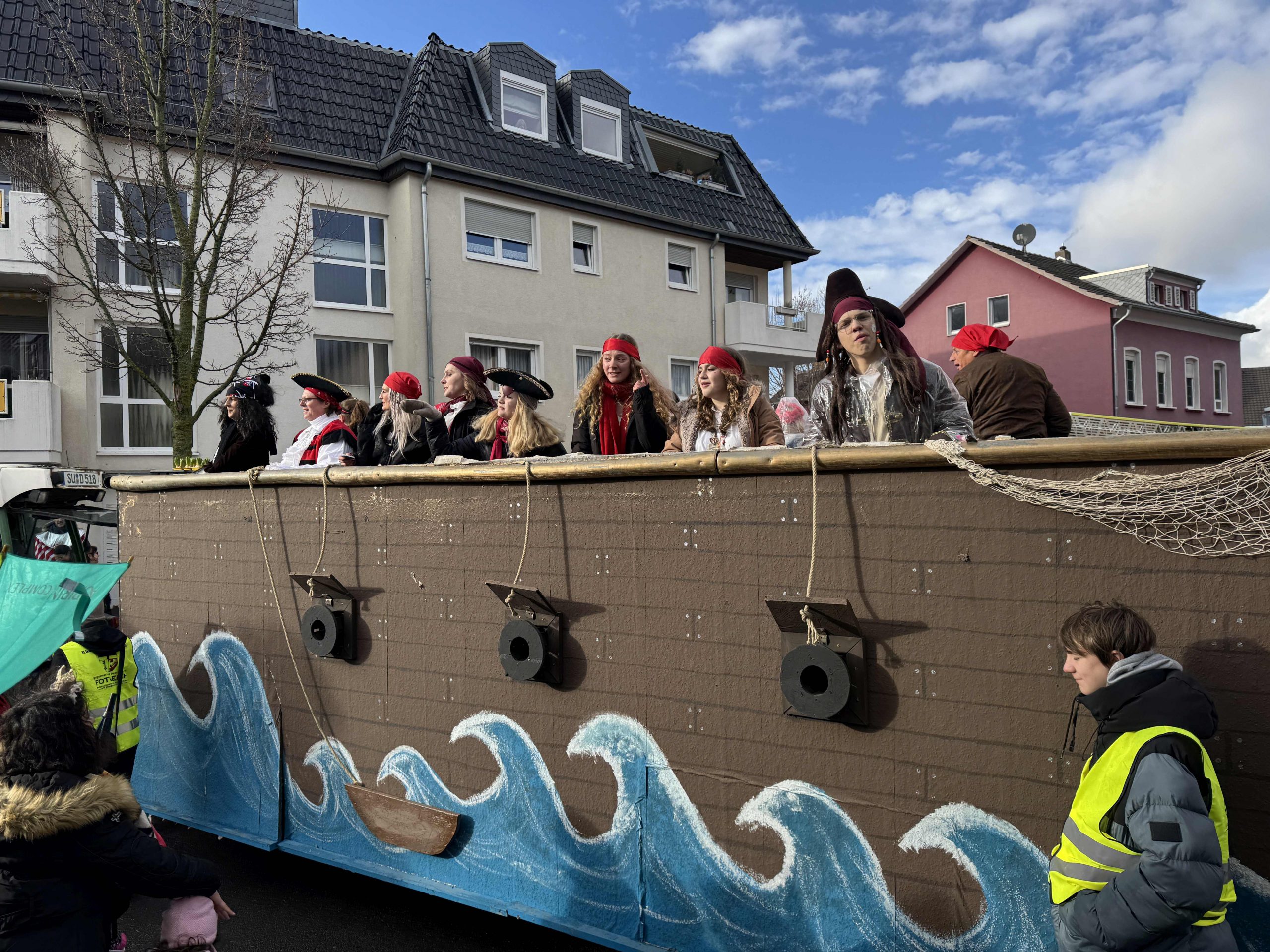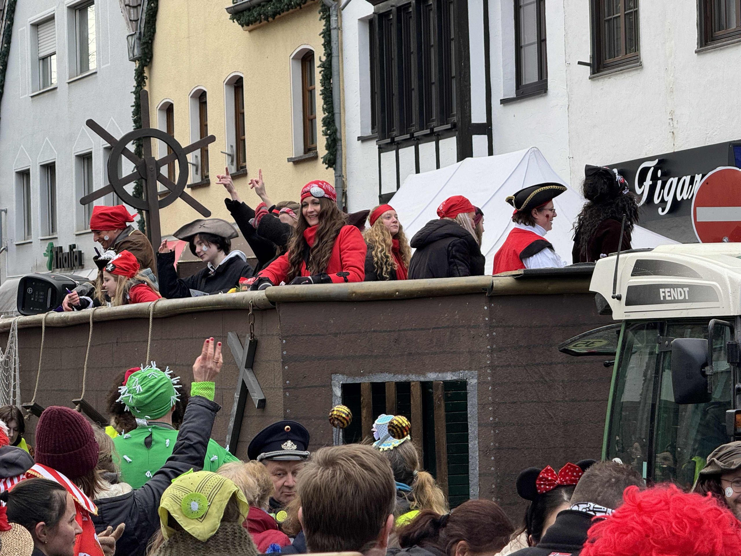 Ein fröhliches „Alaaf!“ klingt durch die Straßen von Rheinbach während überall Musik dröhnt und mittendrin das SGR Piratenschiff!