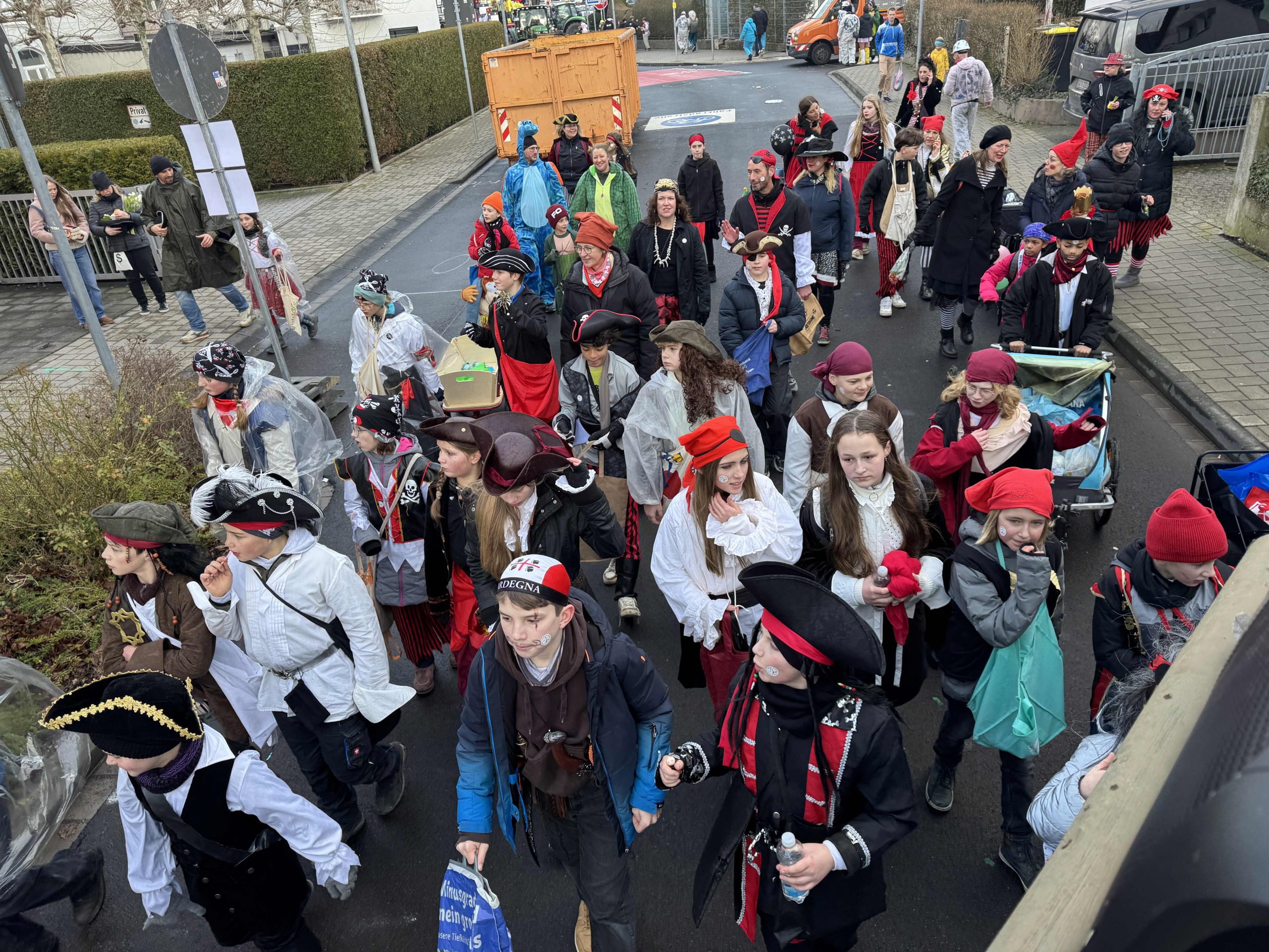 Ein fröhliches „Alaaf!“ klingt durch die Straßen von Rheinbach während überall Musik dröhnt und mittendrin das SGR Piratenschiff! Unter dem Motto „SGR Ahoi!“ zog unsere Schule am Dienstag, den 17.02.26 als bunt verkleidete Piratengruppe durch die Rheinbacher Straßen und sorgte für gute Stimmung am Straßenrand. Viele Schüler*innen sowie Lehrer*innen fanden die Idee, am Karnevalszug teilzunehmen, großartig und zogen daher mit einem prächtigen Wagen und einer Fußgruppe durch die Straßen Rheinbachs. Bei strahlender Stimmung und zahlreich begeisterten Zuschauer*innen wurde der Karnevalszug 2026 zu einem farbenfrohen Highlight in der Innenstadt. Musik, Kamelle und kreative Kostüme sorgten für eine ausgelassene Atmosphäre und mittendrin zeigte das SGR nochmal mehr den starken Gemeinschaftssinn.