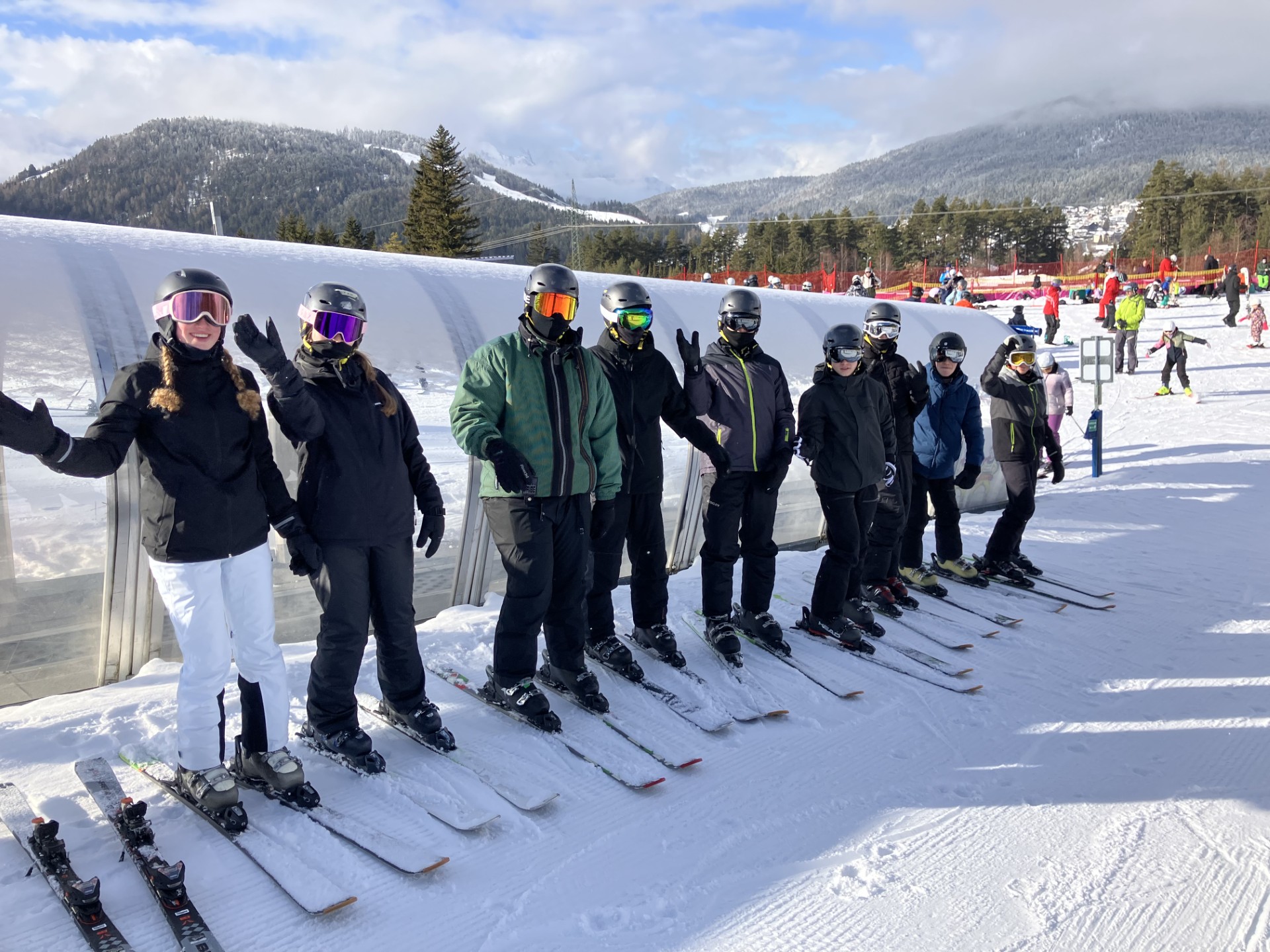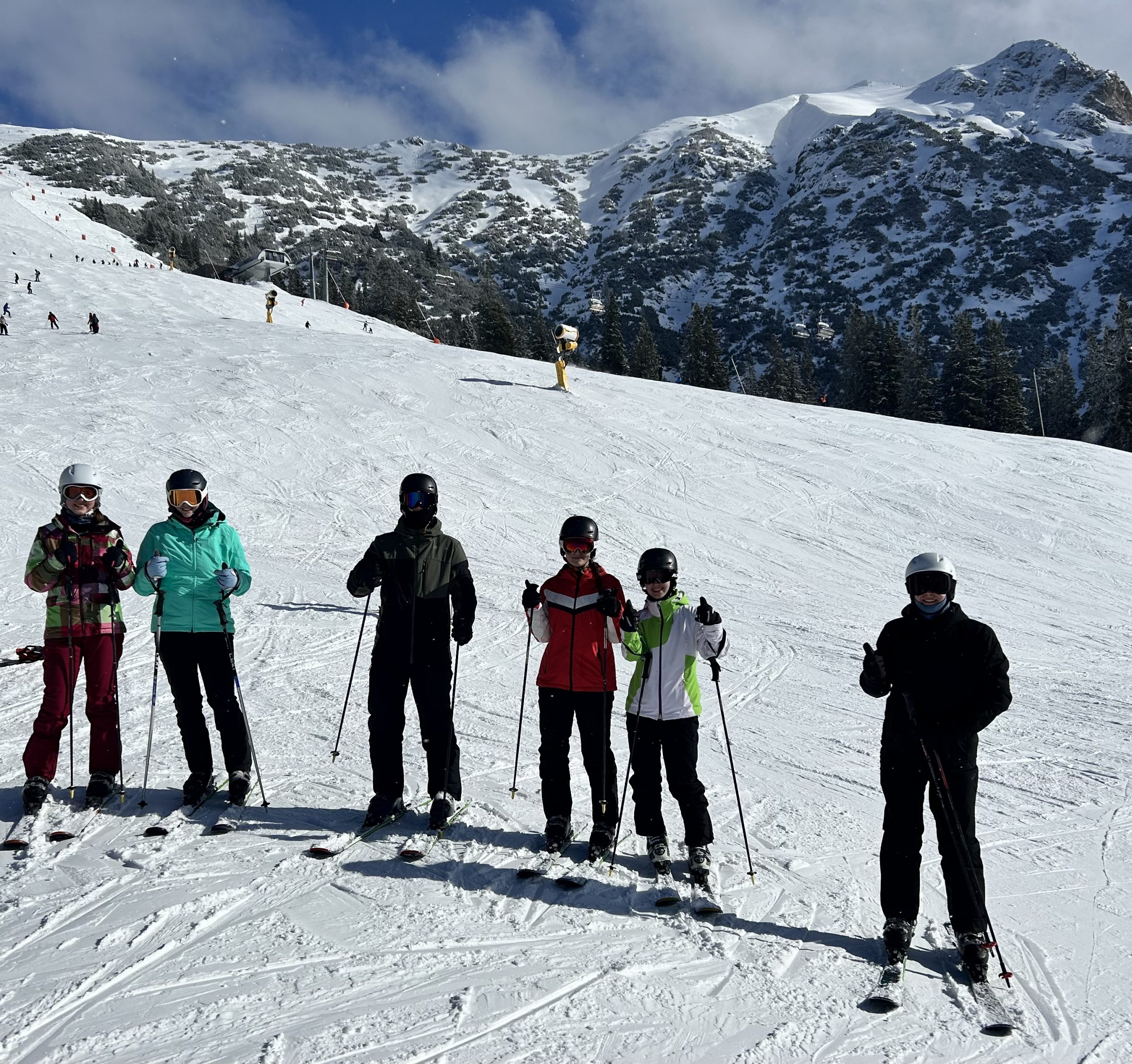 Im Skigebiet angekommen verteilten sich die unterschiedlichen Gruppen auf die verschiedenen Pisten, um sich zur Mittagspause wieder alle zusammen auf der Rosshütte zu treffen.