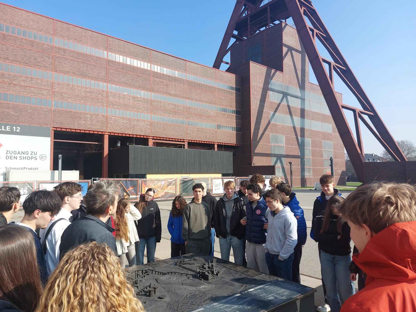 Am Mittwoch, den 04. März, machten sich der Erdkunde-Grundkurs von Herrn Nolden und der Leistungskurs von Herrn Schäfer früh am Morgen auf den Weg ins Ruhrgebiet. Ziel der Exkursion war es, den Strukturwandel einer der bekanntesten Industrieregionen Europas direkt vor Ort zu erleben. Und das bei bombastischem Wetter, das den Tag noch einmal besonders machte - eine Jacke war nicht nötig.