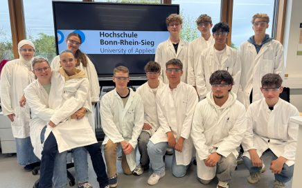 Exkursion ins Chemielabor der Hochschule Bonn-Rhein-Sieg Chemie hautnah erleben – und durchführen Exkursion ins Chemielabor der Hochschule Bonn-Rhein-Sieg Exkursion ins Chemielabor der Hochschule Bonn-Rhein-Sieg Die drei Chemie-Kurse der Jahrgangsstufe 11 hatten in der vergangenen Woche die Gelegenheit, einen spannenden Einblick in die praktische Laborarbeit an der Fachhochschule Bonn-Rhein-Sieg zu gewinnen. Im Rahmen des Chemieunterrichts führten […]